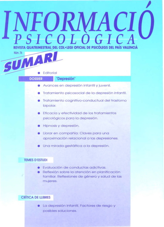 Llorar en compañía: Claves para una aproximación relacional a las depresiones.