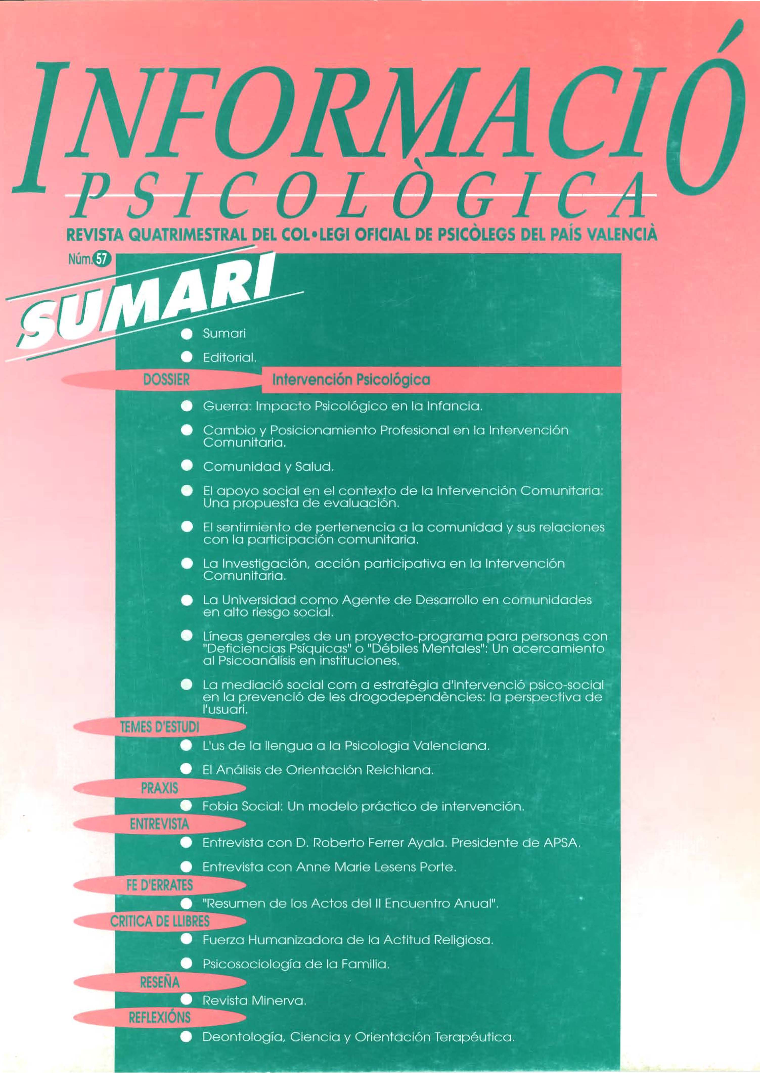 Intervención Psicosocial y Comunitaria (Abril 1998)